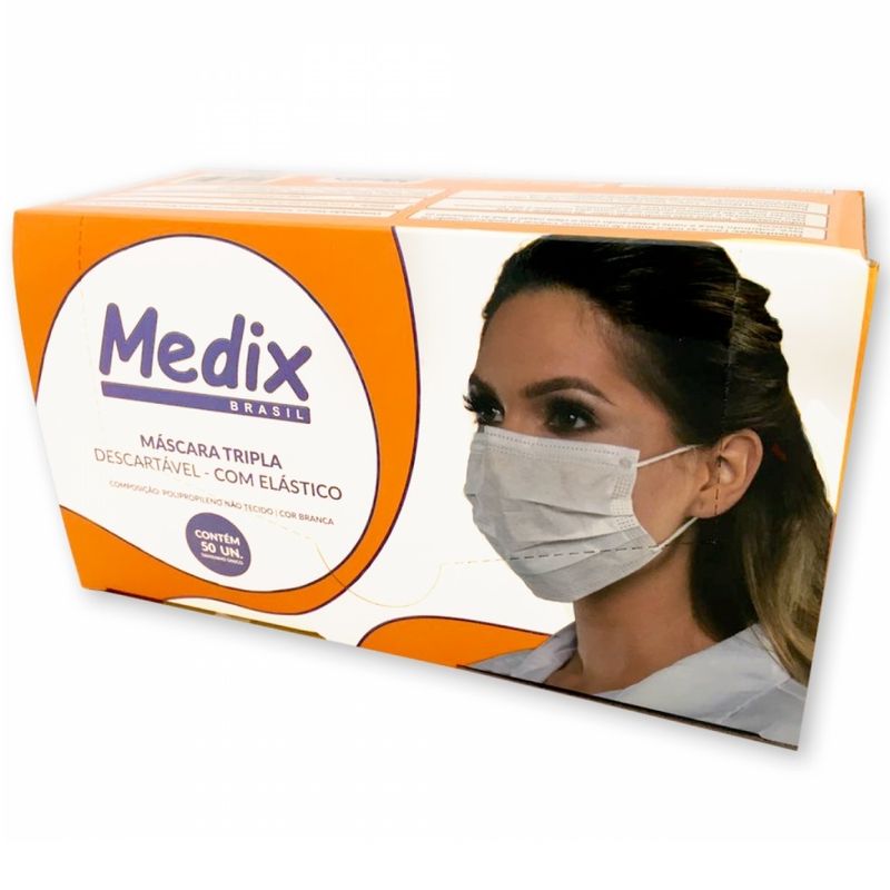 Máscara Tripla Descartável C/50 Unidades Branca Medix