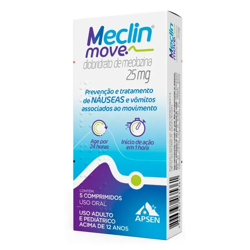 Meclin Move É UM MEDICAMENTO. SEU USO PODE TRAZER RISCOS. PROCURE UM MÉDICO OU UM FARMACÊUTICO. LEIA A BULA. MEDICAMENTOS PODEM CAUSAR EFEITOS INDESEJADOS. EVITE A AUTOMEDICAÇÃO: INFORME-SE COM O FARMACÊUTICO.