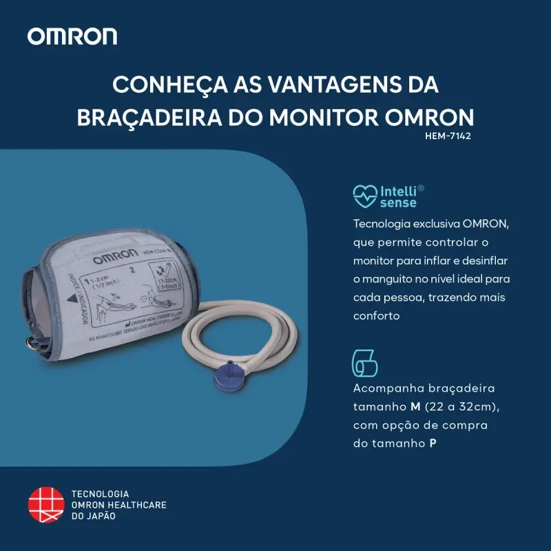 Benefícios e diferenciais do Monitor de Pressão Arteria de Braço Omron HEM-7142-BR- Monitoramento completo da pressão arterial e ritmo cardíaco.