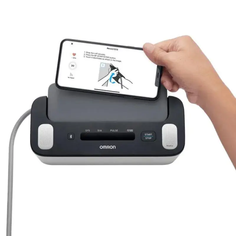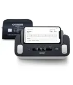 Registo de eletrocardiograma (ECG ou EKG)Este modelo também tem um registador de ECG de qualidade clínica, que permite aos utilizadores registarem e visualizarem ECG nos respectivos smartphones com aplicação "OMRON connect".