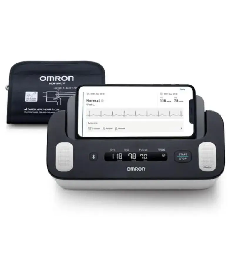 O que é e para que serve o monitor de pressão Omron HEM-7530 T1?O medidor de tensão arterial + ECG automático de braço OMRON Complete possui 2 funções principais: uma medição da tensão arterial e um registo de eletrocardiograma (ECG ou EKG).