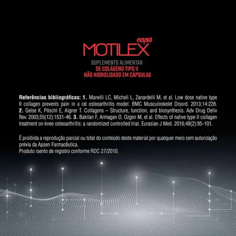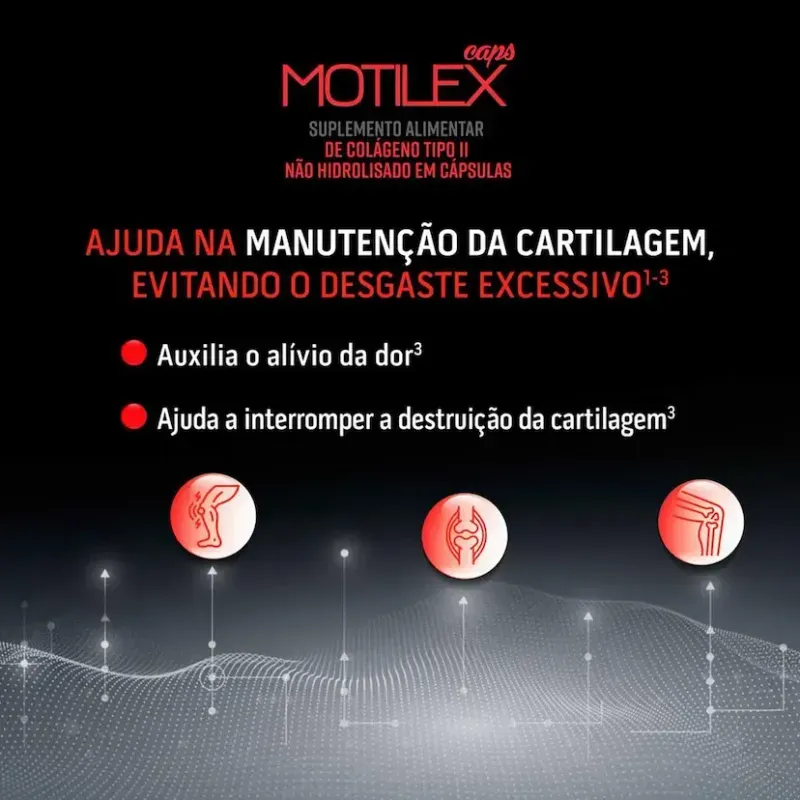 Indicado para estimular a produção de colágeno pelo organismo, Motilex reduz a flacidez e age na formação e reconstituição da cartilagem articular.