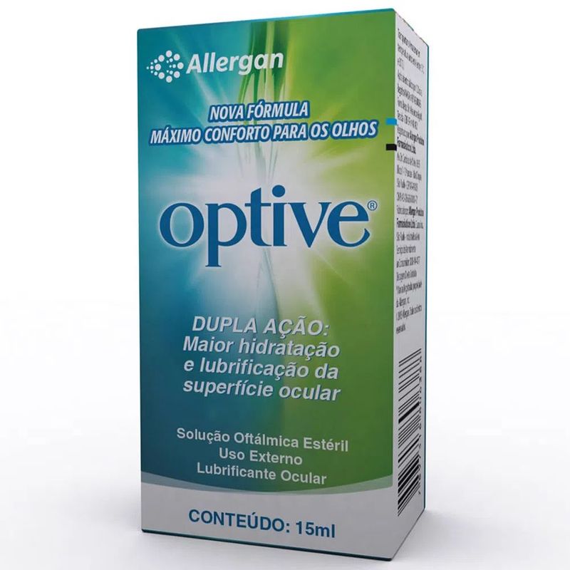 O Optive é um lubrificante indicado para a superfície ocular, proporciona alívio da ardência, irritação, sensação de areia e corpo estranho.