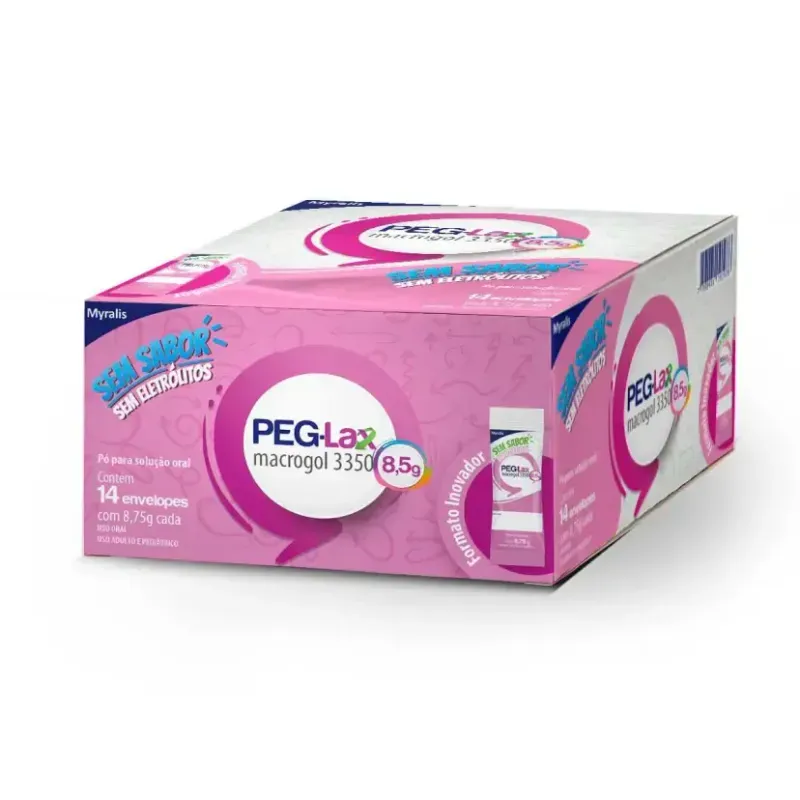 Peg-Lax é composto por macrogol 3350, uma substância laxativa não osmótica e que não causa fermentação pelas bactérias intestinais ou desconfortos abdominais. Ainda, o macrogol 3350 não é absorvido pelo intestino sendo seguro para uso. Peg-Lax não possui eletrólitos em sua composição e não possui sabor, facilitando a sua mistura a outros tipos de alimentos.