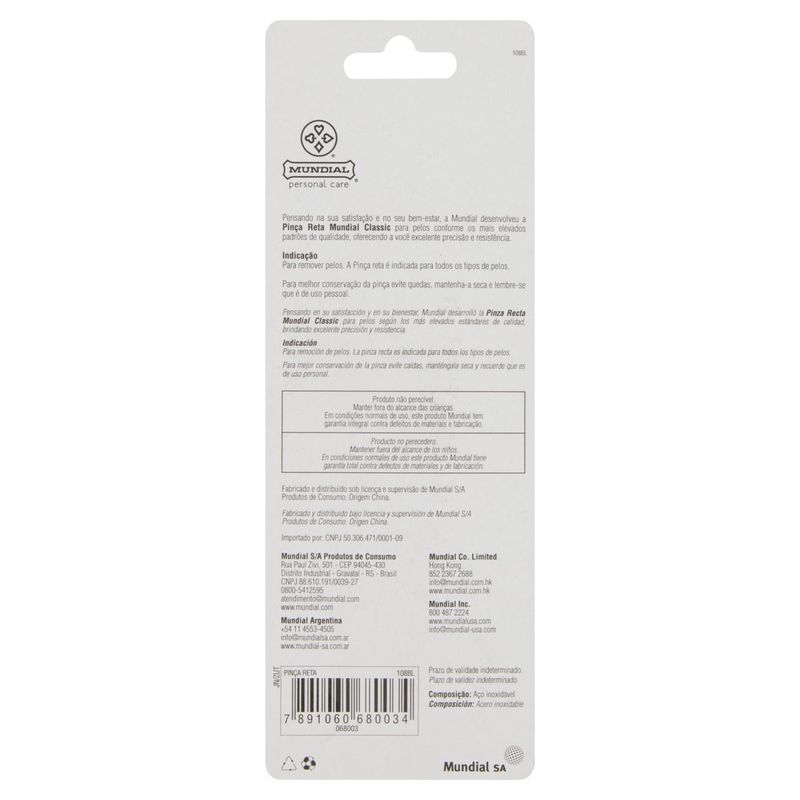 Para usar a Pinça Mundial Classic, posicione-a o mais próximo possível da raiz do pelo e retire-o com firmeza na direção do seu crescimento. Tenha cuidado para não ferir a pele. Para garantir a durabilidade do produto, evite quedas e mantenha a pinça sempre seca e limpa. Este produto é de uso pessoal, portanto, deve ser manuseado com cuidado.