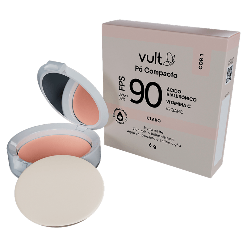 O Pó Compacto Vult é um pó com acabamento matte e efeito antibrilho, que oferece proteção solar (UVA++ e UVB) e proteção contra a luz azul.