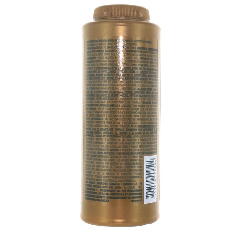 O Polvilho Antisséptico de Granado combate assaduras, brotoeja e odores da transpiração. Testado clinicamente, ele também previne o aparecimento de bactérias, que causam o mau cheiro, e fungos, que são responsáveis pelas infecções. Dê um fim no desconforto de ter pés com pruridos e frieiras, epiderme se mantém fresca, livre de assaduras, dermatites inflamatórias ou maus odores.