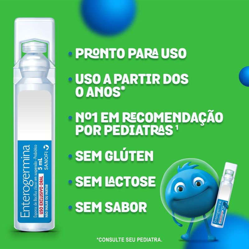 O Enterogermina pode ser misturado em água, suco, chá, leite e outras bebidas.