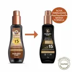 Seu corpo dourado e sua pele protegida! Protetor Solar Corporal FPS 15 da marca Australian Gold promove um bronzeado Instantâneo, que oferece uma suave coloração dourada à pele, e alta qualidade em proteção solar. Sua fórmula em spray gel é resistente à água, tem textura agradável e é de rápida absorção. Indicado para peles:• Fototipo 3 - Pele clara, olhos e cabelos escuros;• Bronzeia facilmente, não fica vermelha..• Pouca sensibilidade. Benefícios:• Instant Bronzer: Com ingredientes que dão à pele uma aparência dourada logo na primeira aplicação do produto. Sai ao lavar.• Naturais Australianos: Ameixa Kakadu que hidrata, ilumina, melhora a distribuição de melanina e uniformiza o tom da pele. Óleo de Melaleuca, antioxidante que purifica a pele.• Hidratantes: Óleo de smentes de girassol, óleo do fruto da oliveira e manteiga de cacau que hidratam profundamente a pele.• Aloe Vera: Oferece ação calmante para a pele. Ativos:• Sua exclusiva fórmula Biosine Complex proporciona um bronzeado mais saudável e muito mais duradouro.• A tecnologia Instant Bronzer que proporciona efeito bronzeado imediato.• Possui óleos exóticos e aloe vera deixando a pele sedosa e hidratada.• Extratos naturais tonalizantes (Nozes, abóbora e cenoura). A Marca:Considerada uma das líderes no mercado mundial de bronzeadores e protetores solares, a Australian Gold elabora seus produtos a partir da exclusiva fórmula Biosine Complex. Desenvolvida pelo The Australian Gold Institute, essa combinação de vitamina E, panthenol, aloe vera e extratos herbais australianos previne o envelhecimento e o ressecamento da pele, garantindo assim um bronzeado seguro e prolongado. Modo de usar:Com a pele limpa e seca, aplique generosamente o FPS 15 Spray Gel por todo o corpo, pelo menos 30 minutos antes de se expor ao sol. Reaplique sempre que achar necessário ou a cada duas horas, depois de se molhar ou transpirar intensamente.