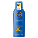 O protetor solar corporal Nivea Sun Protect & Hidrata possui alta proteção contra os raios UVA e UVB - FPS 30 - e alto poder de hidratação. Sua fórmula é enriquecida com Panthenol, um ativo que equilibra e hidrata a pele de forma prolongada.Com textura leve e toque seco, não fica oleoso na pele, não pesa e é rapidamente absorvido, proporcionando uma pele macia, levemente perfumada e imediatamente protegida.É indicado mesmo para as peles mais sensíveis à queimadura solar. Indicado para uso adulto.