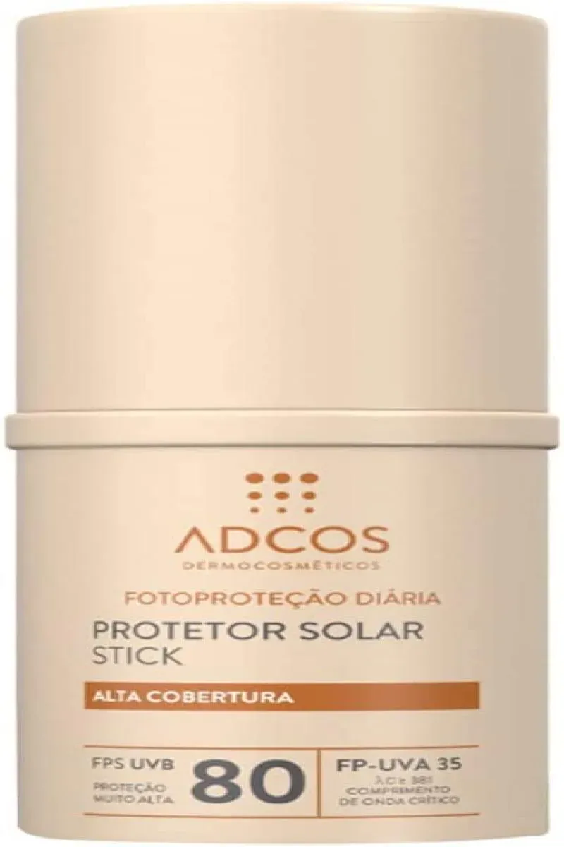 Protetor Solar Facial Stick FPS80 Adcos Peach 17gIndicado para todos os tipos de pele, esse dermocosmético é fotoestável, oil-free, não comedogênico, sem parabenos, sem fragrância e dermatologicamente testado. Sua embalagem em bastão é prática e portátil, permitindo o transporte e aplicação sempre que necessário, pois você pode carregá-la na bolsa por onde for. Protetor solar em formato stick com efeito mate e toque seco.Possui proteção contra luz UVA, UVB, luz visível, infravermelho, protege o DNA celular e ação antioxidante. Ainda é ideal para quem pratica esportes ao ar livre por ser resistente à água, não escorrer e nem deixar os olhos arderem, ter toque seco e ser invisível à pele, sem deixar vestígios brancos. Uso: Aplique abundantemente antes da exposição ao sol. efetividade. Reaplicar sempre, após sudorese intensa, nadar, banhar-se, secar-se com toalha e durante a exposição ao sol.