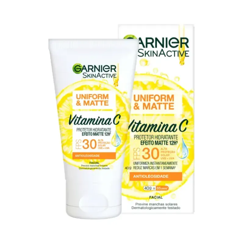 Protetor Solar Hidratante Facial Garnier Uniform&Matte Vitamina C FPS 30 40g