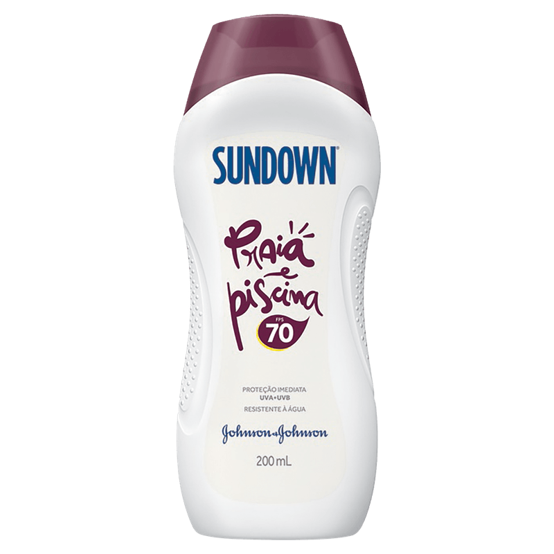 O Protetor Solar Sundown Praia e Piscina FPS70 ajuda a proteger a pele de elementos agressores como o sol, cloro e a água salgada do mar. Oferece proteção completa e imediata UVA+UVB balanceada, protegendo a pele de queimaduras solares dentro e fora d'água, pois é três vezes mais resistente à água e ao suor por até 2 horas, além de ser seguro para o uso de toda a família.