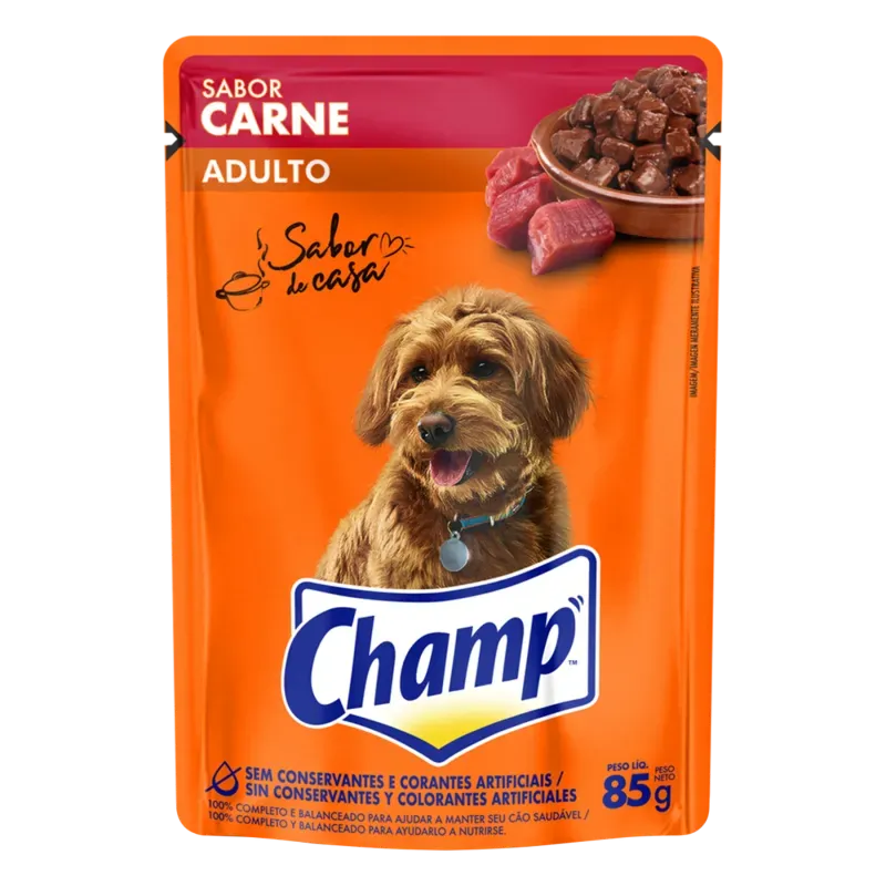 Com sabor caseiro de carne, textura úmida e aroma irresistível, o sachê Champ proporciona uma experiência alimentar mais prazerosa, ao mesmo tempo em que apoia a saúde geral do cão, oferecendo cuidado, nutrição e carinho em cada refeição.