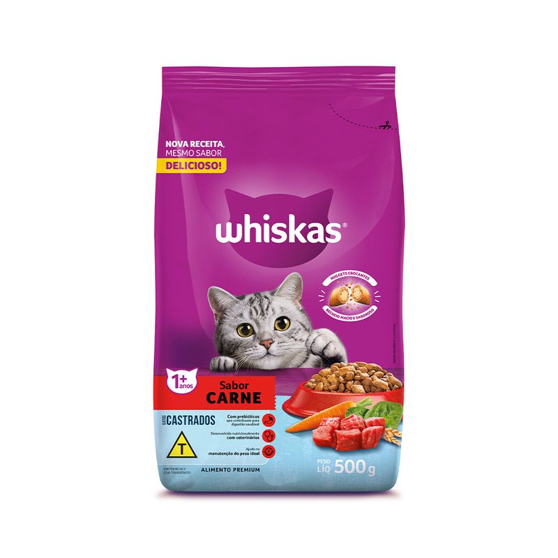 Com nuggets crocantes por fora e recheio macio e saboroso por dentro, a Whiskas proporciona uma experiência irresistível a cada refeição, estimulando o apetite e garantindo prazer ao se alimentar. Livre de corantes artificiais, sua composição conta com prebióticos que contribuem para uma digestão saudável, promovendo melhor absorção dos nutrientes essenciais.