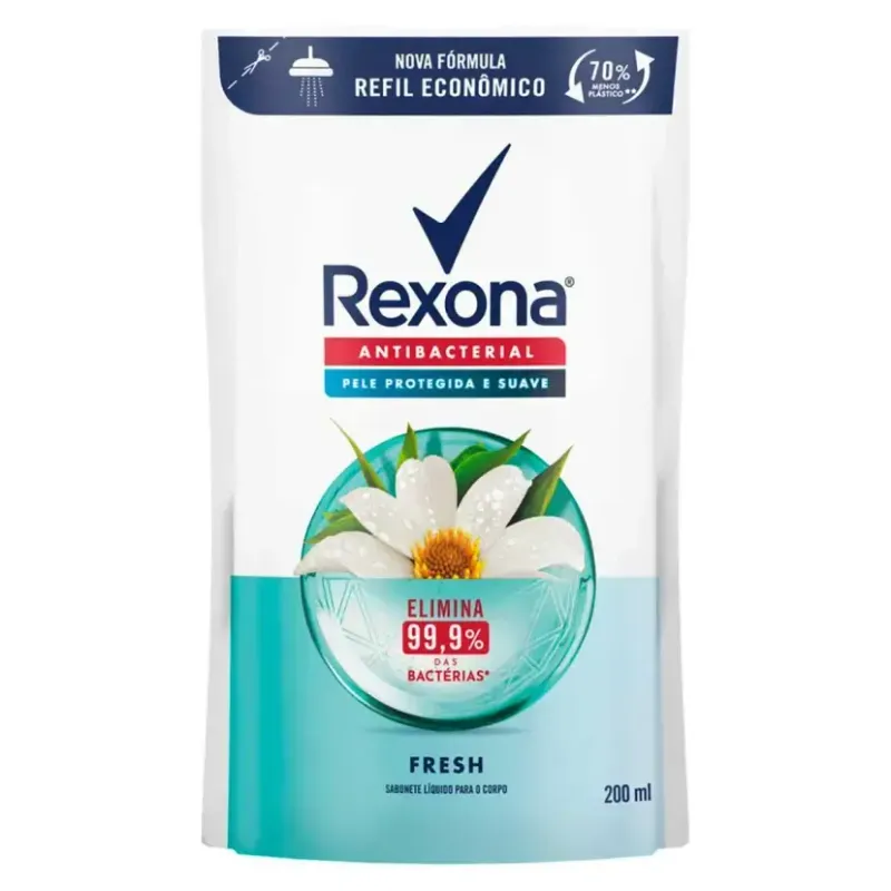 O Rexona Antibacterial Fresh é um sabonete líquido que oferece 10 vezes mais proteção que os sabonetes comuns. Seu uso proporciona refrescância e oferece uma deliciosa sensação de banho tomado por mais tempo, mantendo a pele limpa, saudável, hidratada e perfumada.