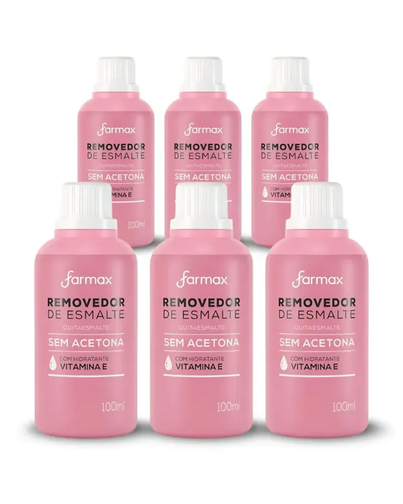 Removedor De Esmalte Sem Acetona Vitamina E 100Ml Farmax Com 06 Unidades