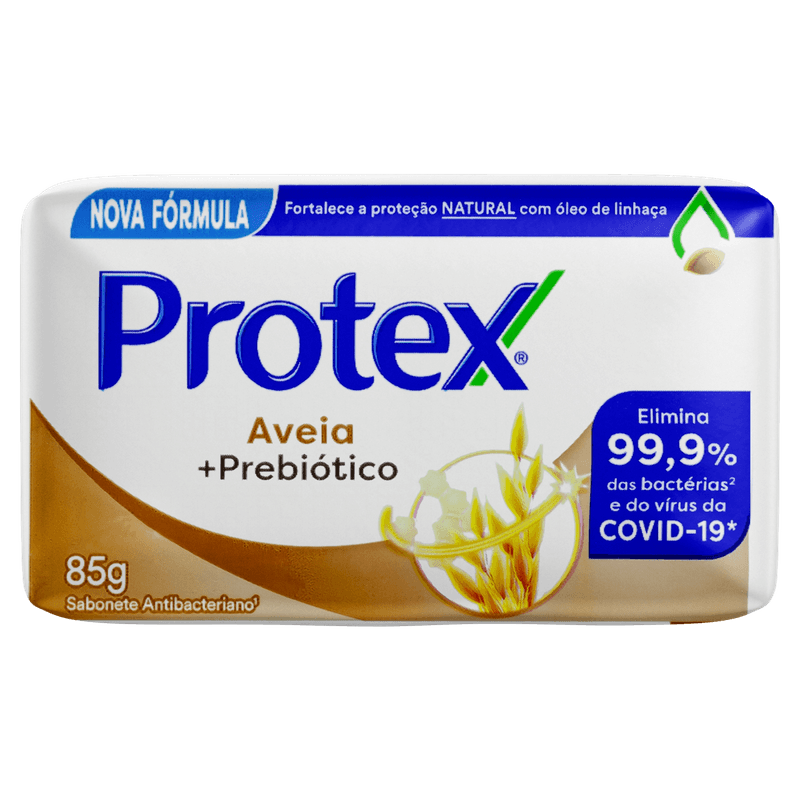Protex® Aveia combina a proteção antibacteriana de Protex® com os benefícios naturais da aveia. Para a boa saúde da sua pele Elimina 99,9% das bactérias Fórmula exclusiva com pH balanceado, ajuda a limpar e remover as impurezas da pele Cria uma barreira de proteção que ajuda a prevenir a proliferação de bactérias