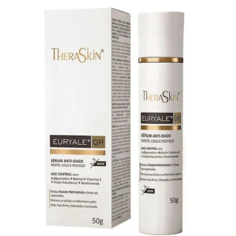 O Serum Facial Theraskin Euryale QR é um produto cosmético anti-idade com uma fórmula multifuncional que combina ingredientes ativos como isoquercetina, vitamina E, nicotinamida e ácido hialurônico. Serve para estimular a renovação celular, aumentar a produção de colágeno, proteger a pele contra o envelhecimento, hidratar e rejuvenescer, atuando em todos os tipos de pele, incluindo as mais sensíveis.