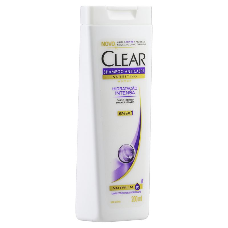 Shampoo Anticaspa Clear Women Hidratação Intensa com 200mlClear Women Hidratação Intensa é um shampoo anticaspa e restaurador, desenvolvido especialmente para as mulheres com couro cabeludo oleoso e cabelos secos. Formulado com Aminoácidos, Vitamina B3 + a tecnologia inovadora Bio-Booster, Clear Women nutre os fios e limpa profundamente o couro cabeludo, removendo a oleosidade e, consequentemente, a caspa, além de ajudar a evitar que ela reapareça. Isso graças à sua formulação inteligente, que também ajuda a ativar a camada de proteção natural do couro capilar. Clear Women Hidratação Intensa ainda deixa uma deliciosa fragrância oriental nos seus cabelos após a aplicação, desenvolvida com um mix de frutas, nota floral de jasmim e um fundo de sândalo precioso, baunilha amarga e cremosa. Benefícios e DiferenciaisTecnologia inteligente Bio-Booster.Fragrância oriental.Limpa e protege o couro cabeludo.Remoção da caspa e prevenção do reaparecimento.Reposição de proteínas e nutrição profunda nos cabelos.Uso: Aplique o Shampoo Anticaspa no cabelo molhado. Massageie o couro cabeludo. Enxágue. Repita. Para melhores resultados, use diariamente o Shampoo Clear Hidratação Intensa em conjunto com o Condicionador Anticaspa Clear Hidratação Intensa. IngredientesAqua, Sodium Laureth Sulfate, Cocamidopropyl Betaine, Dimethiconol, Zinc Pyrithione*, Dimethicone, Parfum, Carbomer, Phenoxyethanol, Sodum Chloride, Sodium Salicylate, Guar Hydroxypropyltrimonium Chloride, Glycerin*, Zinc Sulfate, Helianthus Annuus Seed Oil*, Glycine*, Niacinamide*, Citronellol, Geraniol, Hexyl Cinnamal, Linalool, Citric Acid, Sodium Hydroxide. *Componentes do Bio-Booster. AdvertênciasUso externo.Não ingerir.Caso haja contato com os olhos, lave-os abundantemente.Se houver irritação, suspenda o uso imediatamente e procure orientação médica.Conservar em local seco e fresco.Mantenha fora do alcance das crianças e dos animais domésticos.