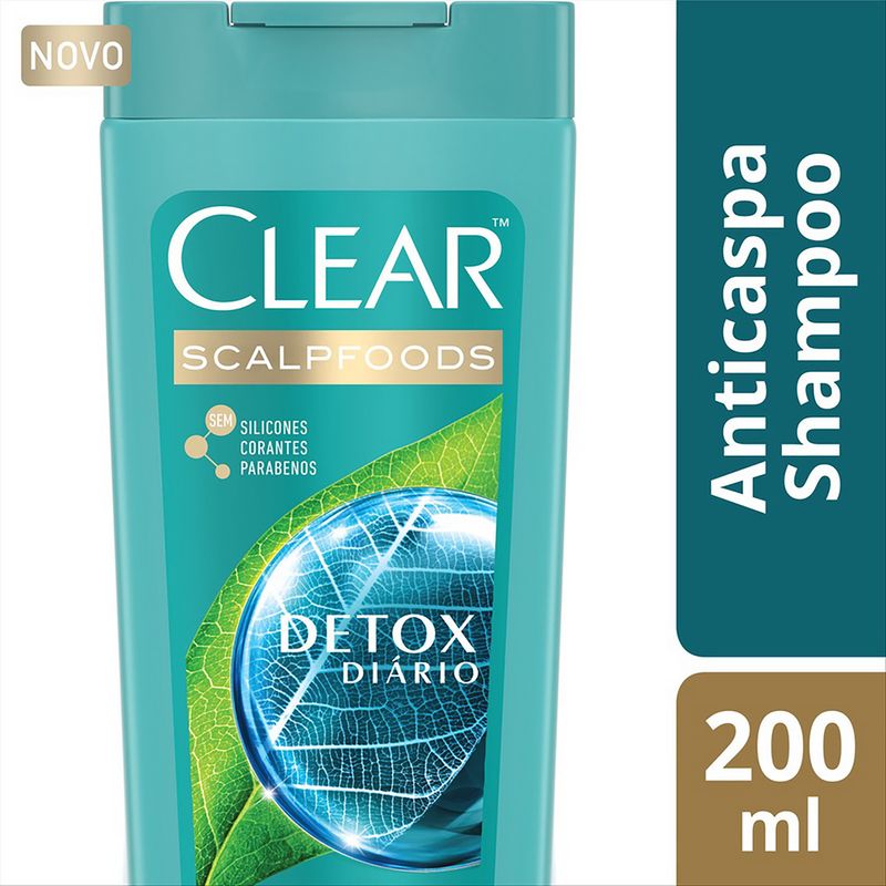 Shampoo Clear Scalpfoods Detox Diário com complexo de superverdes remove as toxinas e impurezas garantindo um couro cabeludo saudável. Com tecnologia exclusiva Clear e o poderoso complexo de ingredientes naturais como Chia, Gengibre, Açafrão da Índia proporciona  uma limpeza profunda removendo resíduos e impurezas ajudando na restauração da saúde do couro cabeludo e dos cabelos. Conta ainda com Chá Verde que possue ação antifúngica e é um poderoso esfoliante,  quando combinado com Pepino proporcionam aos cabelos nutrientes umectantes e restauradores como vitaminas B e C, Kiwi tem alto poder de nutrição e vitaminas que resgatam a saúde do couro cabeludo. Indicação de usoIndicado para cabelos normal a oleoso com caspa. BenefíciosDetox e nutrição do couro cabeludo.Cabelo saudável e livre da caspa;Remove as toxinas para um couro cabeludo saudável.Fórmula sem silicones, corantes e parabenos. Modo de usar1. Aplique o Shampoo Clear Scalpfoods Detox Diário no couro cabeludo e nos cabelos úmido2. Massageie bem seu couro cabeludo para uma melhor ação;3. Enxágue completamente;4. Para melhores resultados, repita esse processo e use diariamente.