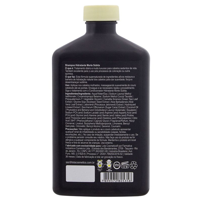O Shampoo Hidratante Morte Súbita 250ml da Lola Cosmetics é ideal para cabelos secos, danificados ou quimicamente tratados. Sua fórmula rica em ingredientes naturais proporciona hidratação profunda, limpeza suave e restauração dos fios.