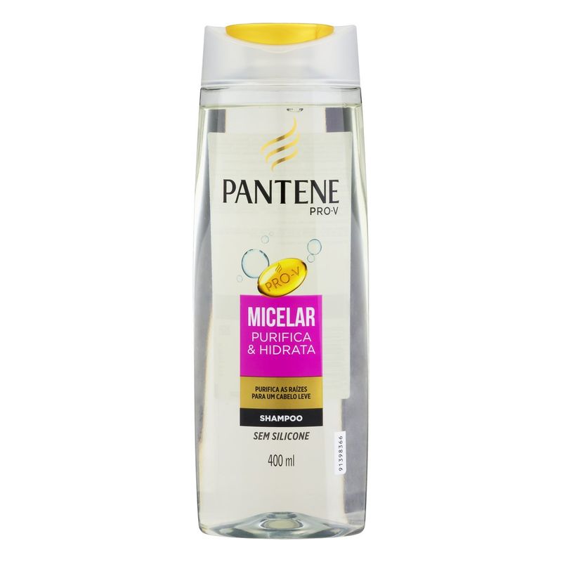 SHAMPOO PANTENE PRO-V MICELAR PURIFICA & HIDRATA 400MLO shampoo da coleção Micelar Purifica & Hidrata não contém silicone e limpa suavemente com o uso de complexos ricos em água para remover as impurezas.É rico em antioxidantes e sua fórmula leve evita que os cabelos fiquem pesados. A fórmula contém vitamina E, Pro-vitaminas e moléculas de limpeza para uma purificação delicada que ajuda a controlar os cabelos oleosos e a prevenir a aparência pesada. A coleção Micelar da Pantene inclui condicionador que deixa os cabelos claros e limpos.USO: Aplicar sobre o cabelo úmido, massagear suavemente o couro cabeludo com a ponta dos dedos com um movimento circular. Enxaguar e repetir se necessário.