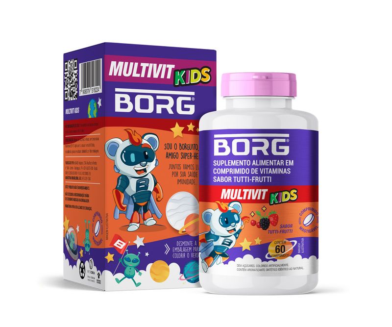 Suplemento Alimentar Borg Multivit Kids Tutti-Frutti 60 Comprimidos Mastigáveis