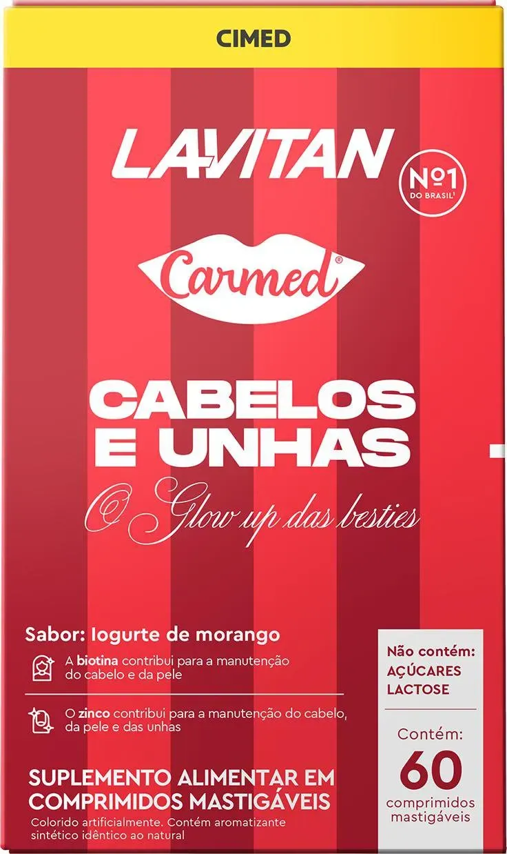 Saude Bem EstarSuplementos VitaminicosSuplemento Alimentar Lavitan Carmed Cabelos e Unhas Iogurte de Morango 60 Comprimidos Mastigáveis
