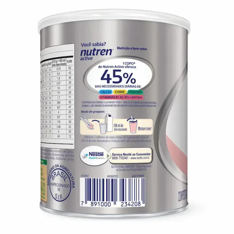 O Nutren Active é um complemento alimentar em pó da Nestlé desenvolvido para jovens e adultos, formulado com proteínas, antioxidantes e 25 vitaminas e minerais. Serve para complementar a alimentação, oferecendo energia e disposição para enfrentar a rotina diária, fornecendo pelo menos 45% das necessidades diárias de nutrientes essenciais como cálcio, cobre, zinco, magnésio, fósforo e diversas vitaminas.