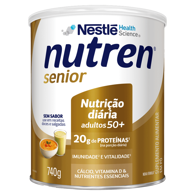 O Nutren Senior é um composto lácteo em pó formulado com cálcio, proteínas, vitamina D e outros nutrientes essenciais para adultos, geralmente utilizado para complementar a alimentação de uma forma geral ou auxiliar no tratamento de quadros clínicos como caquexia (perda de tecido adiposo e músculo ósseo), desnutrição e osteoporose (ossos frágeis e com maior risco de fraturas).