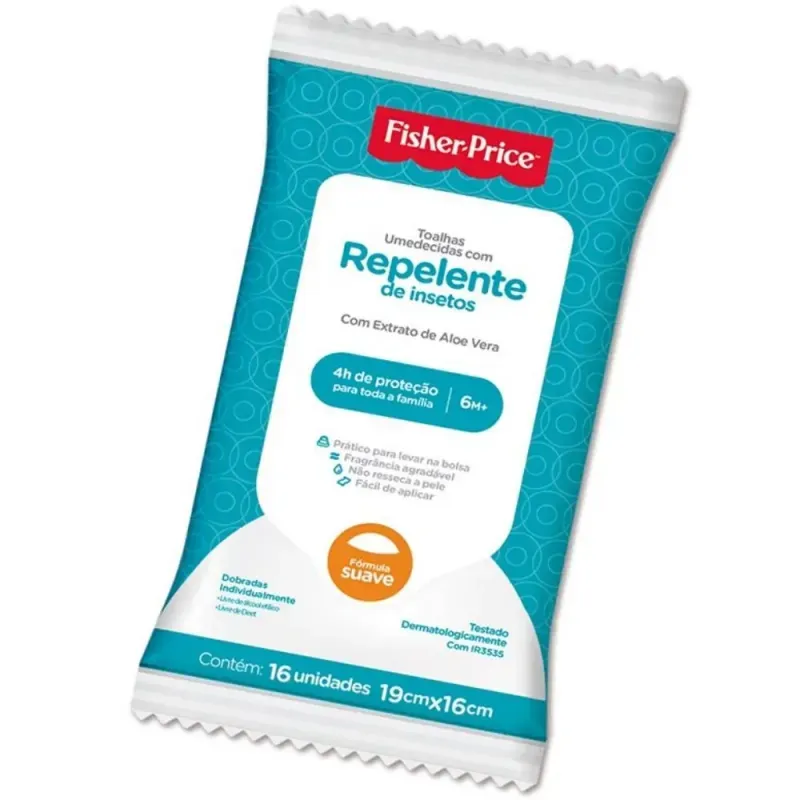 As toalhas umedecidas Repelente de Insetos Fisher-Price são práticas e eficientes para o cuidado com a pele do bebê, e inclusive de toda a família.