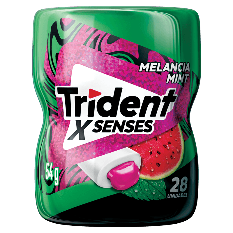 O novo Trident X Senses é uma goma de mascar que possui deliciosas combinações de sabores e texturas, proporcionando uma experiência única de sensações. Esta versão traz 28 unidades em uma embalagem em forma de pote, para você nunca ficar sem seu Trident X Senses.