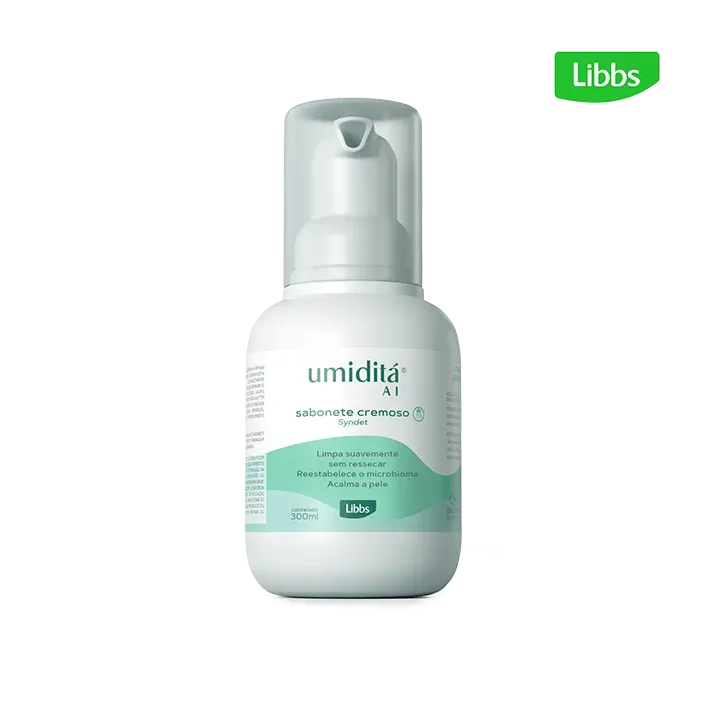 O Umiditá AI é um sabonete líquido cremoso para uso facial e corporal indicado para a limpeza da pele sensível, sensibilizada e com dermatite atópica (DA). Sua fórmula limpa suavemente a pele atópica sem agredir, auxiliando no alívio de irritações e coceiras e acalmando a pele.