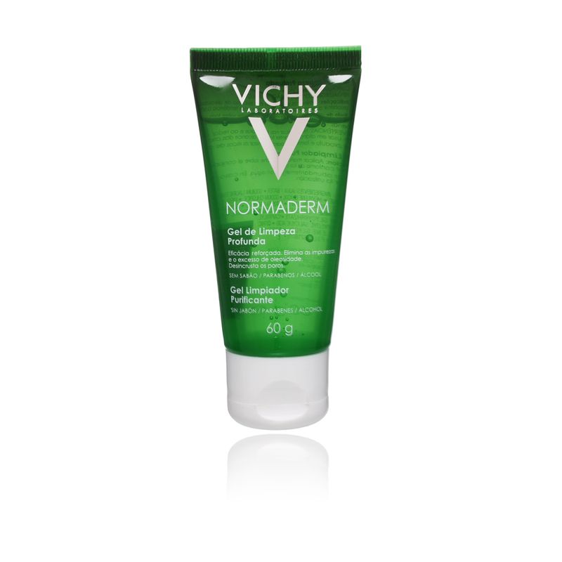 O Gel de limpeza profunda Normaderm da Vichy entra profundamente nos poros e desobstruí, resultando numa pele macia, com controle de oleosidade e hidratada. Indicado: Vichy Normaderm Gel de Limpeza Profunda 60g é indicado para peles oleosas e acneica, sensíveis e mista. Benefícios: - Limpeza profunda - Controle de Oleosidade - Controle de Brilho - Poros Desincrustrados - Ação Calmante e Anti-inflamatória - Não resseca e não repuxa a pela Modo de usar: Lavar o rosto 2 vezes ao dia, de manhã e à noite. Sobre a marca: A Vichy sabe que mesmo uma pele aparentemente bonita está sujeita a condições externas como a radiação solar e a poluição, ou internas, como maus hábitos que interferem na saúde da derme. Por isso, há mais de 80 anos, a marca reúne os melhores profissionais de saúde para promover a todos uma pele saudável. Links relacionados:  Produtos Vichy Produtos Vichy Para Acne