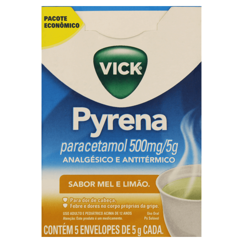 Vick Pyrena é indicado contra dores de cabeça, febre e dores no corpo próprias da gripe. Ele deve ser misturado na água ou no chá quente, não sendo necessária a adição de açúcar.
